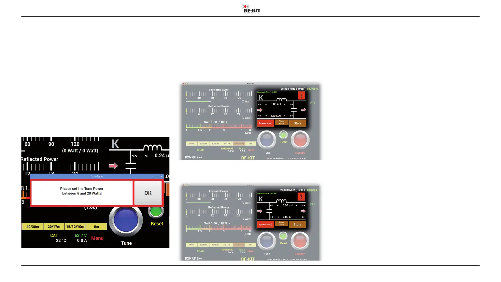 ► Tap at switching area Tuner Reset, to reset values for L and C