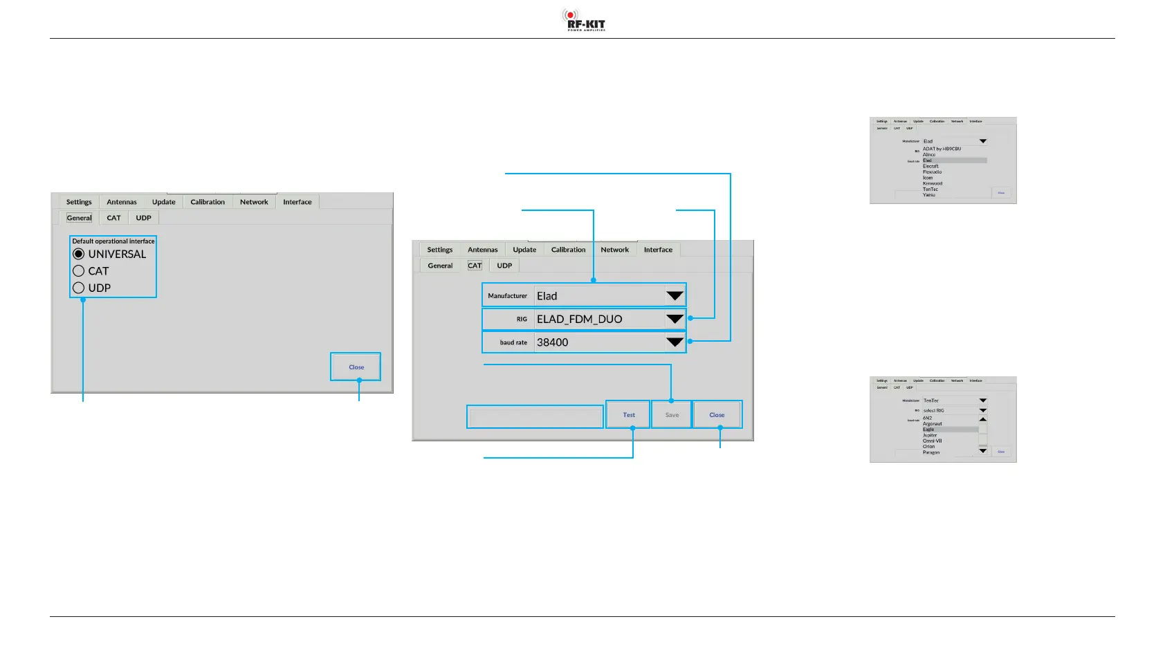 transceiver by clicking one of the buttons UNIVERSAL, CAT or UDP.