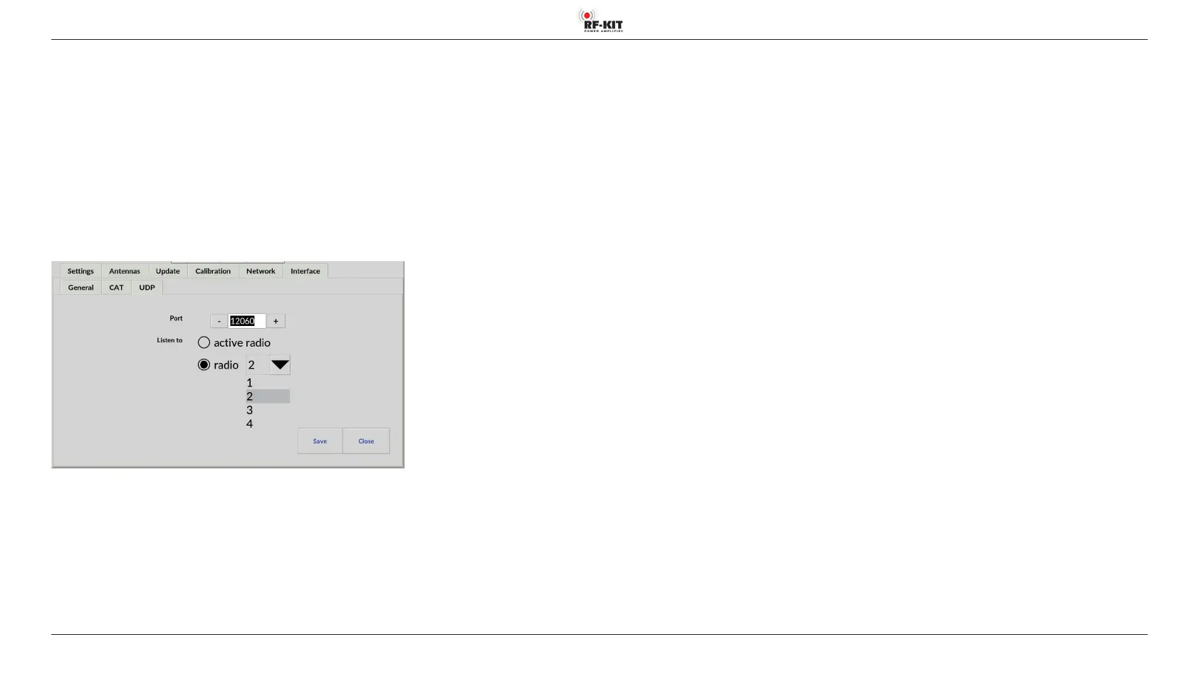 The selection menu closes, the selected exciter/transceiver is displayed.