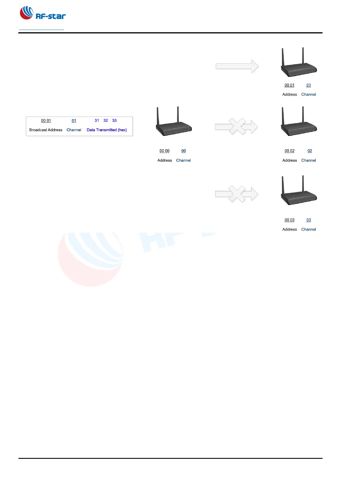 modules on channel XX within the range of the wireless signal can receive the broadcast data, that is, co-channel