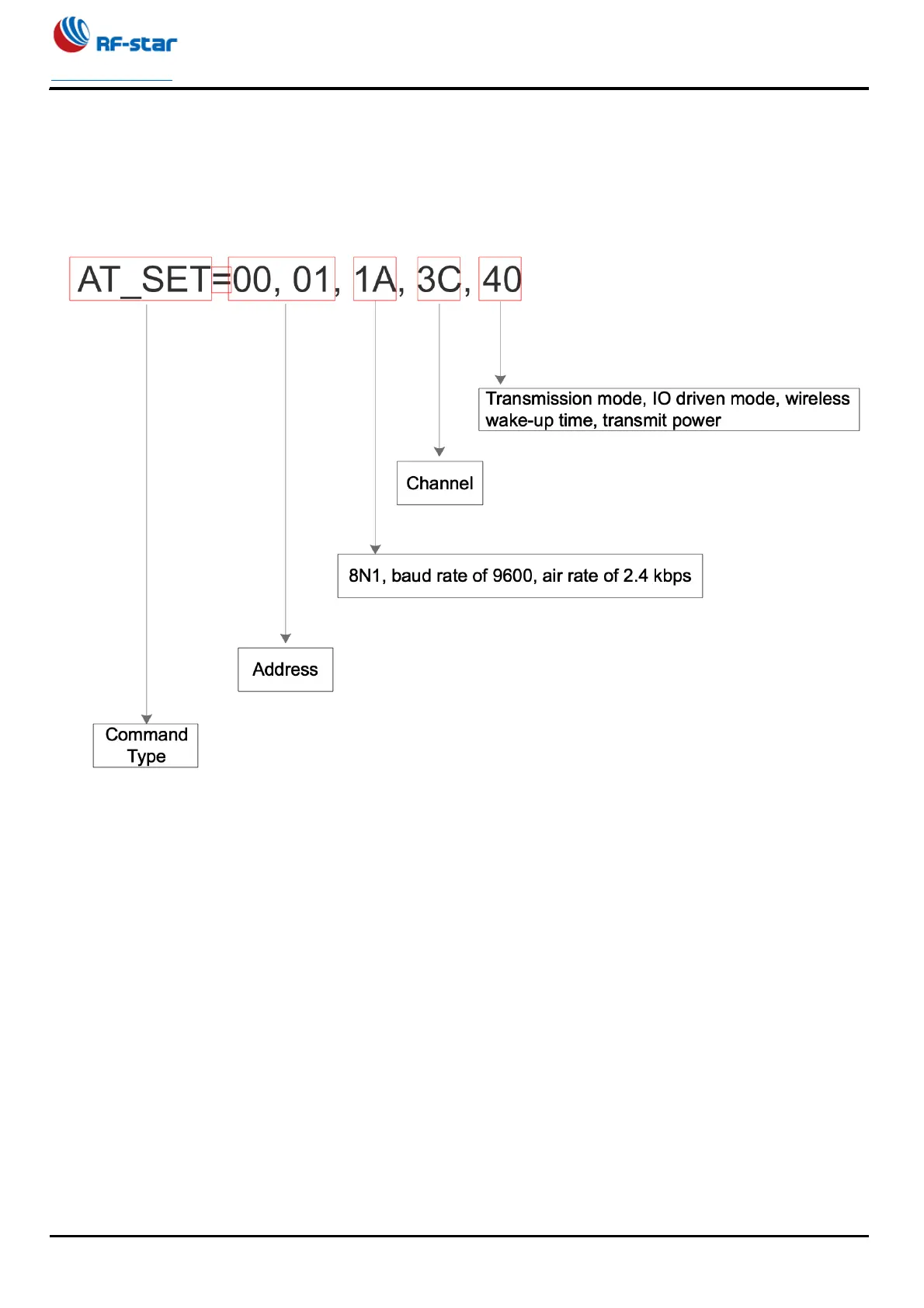 In normal mode, wake-up mode or sleep mode, you can directly input " AT_SET=00,01,1A,3C,40" in the serial port