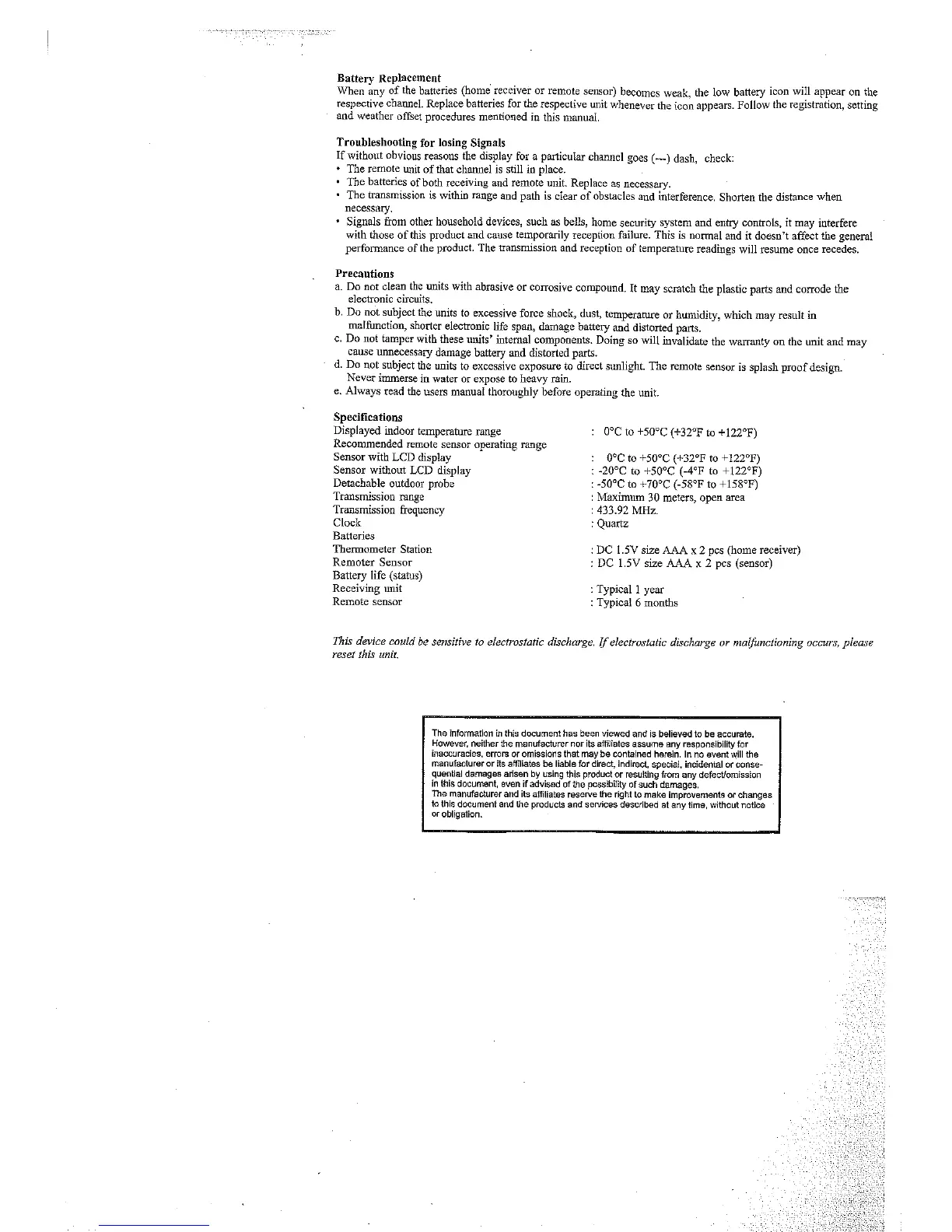 RF Tech 381F01 - Troubleshooting and Specifications; Troubleshooting Signal Loss; Precautions and Specifications