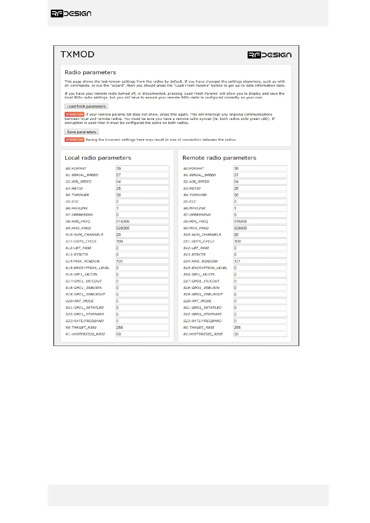 - Apply changes using the ‘Save Params’ button. Note: Changes on the AIR_SPEED, NETID,