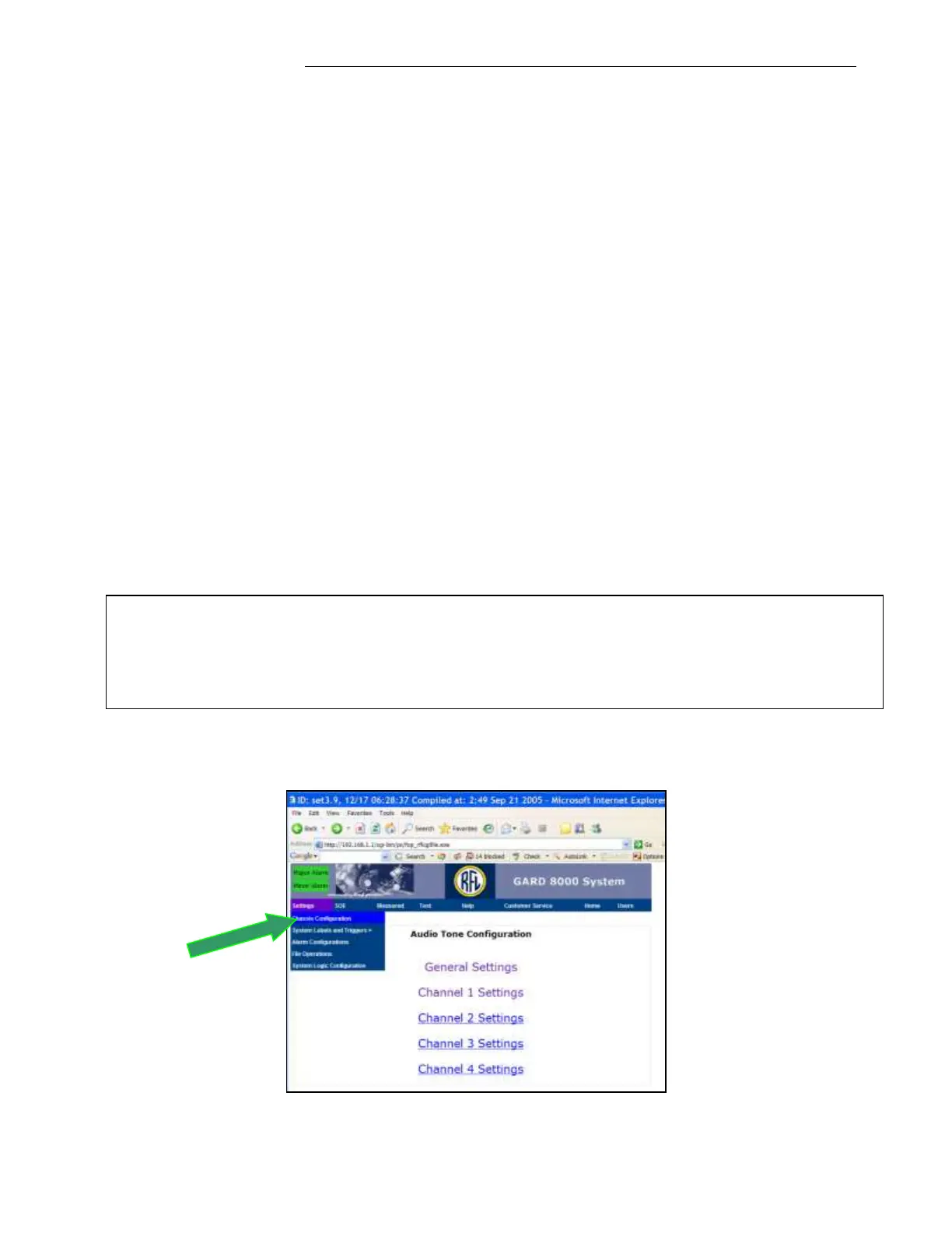 3. At the ‘Audio Tone Configuration’ page first select the ‘General Settings’ to verify the
