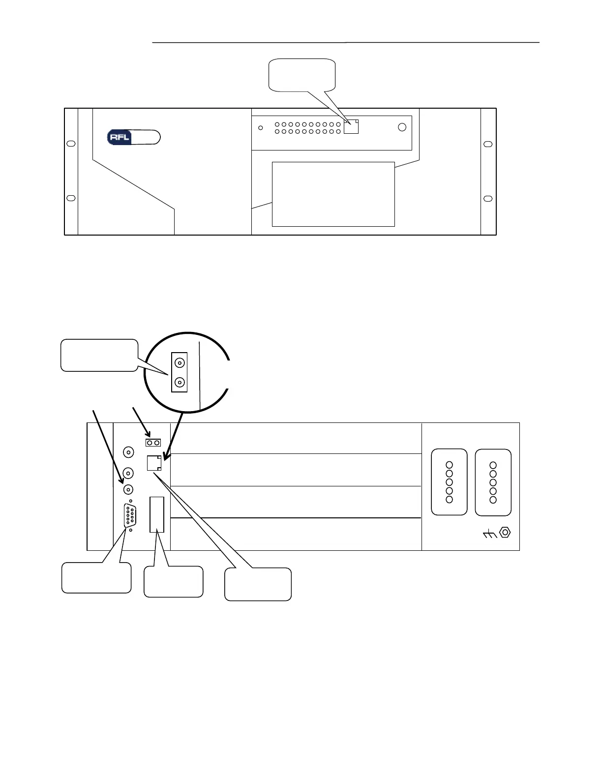 Figure 5-5. Rear view of 3U chassis showing the location of the RJ-45 (or Fiber Optic) and the RS-232 ports