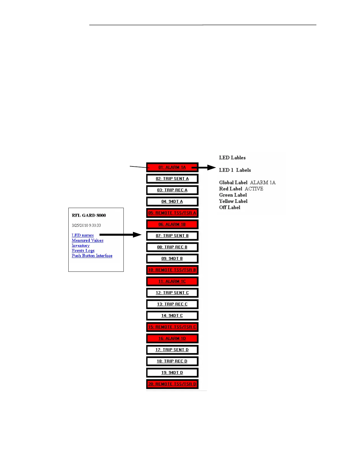 GARD, label information and LED color assignments are shown. There are an additional 20 virtual