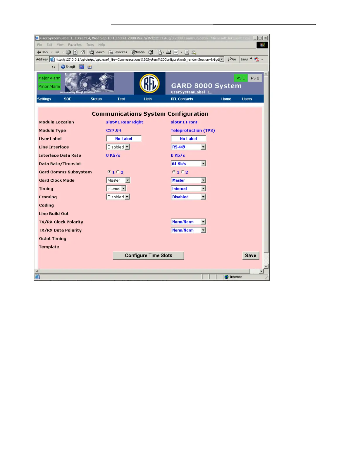 Displays the physical location in the GARD 8000 chassis of the communications interface to be