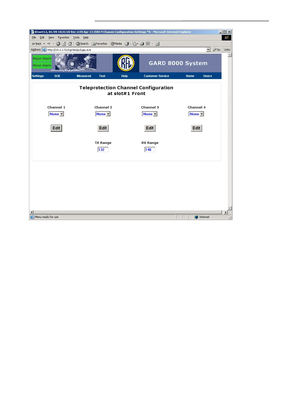 Figure 7-11. Teleprotection Channel Configuration at slot #1 Front web page