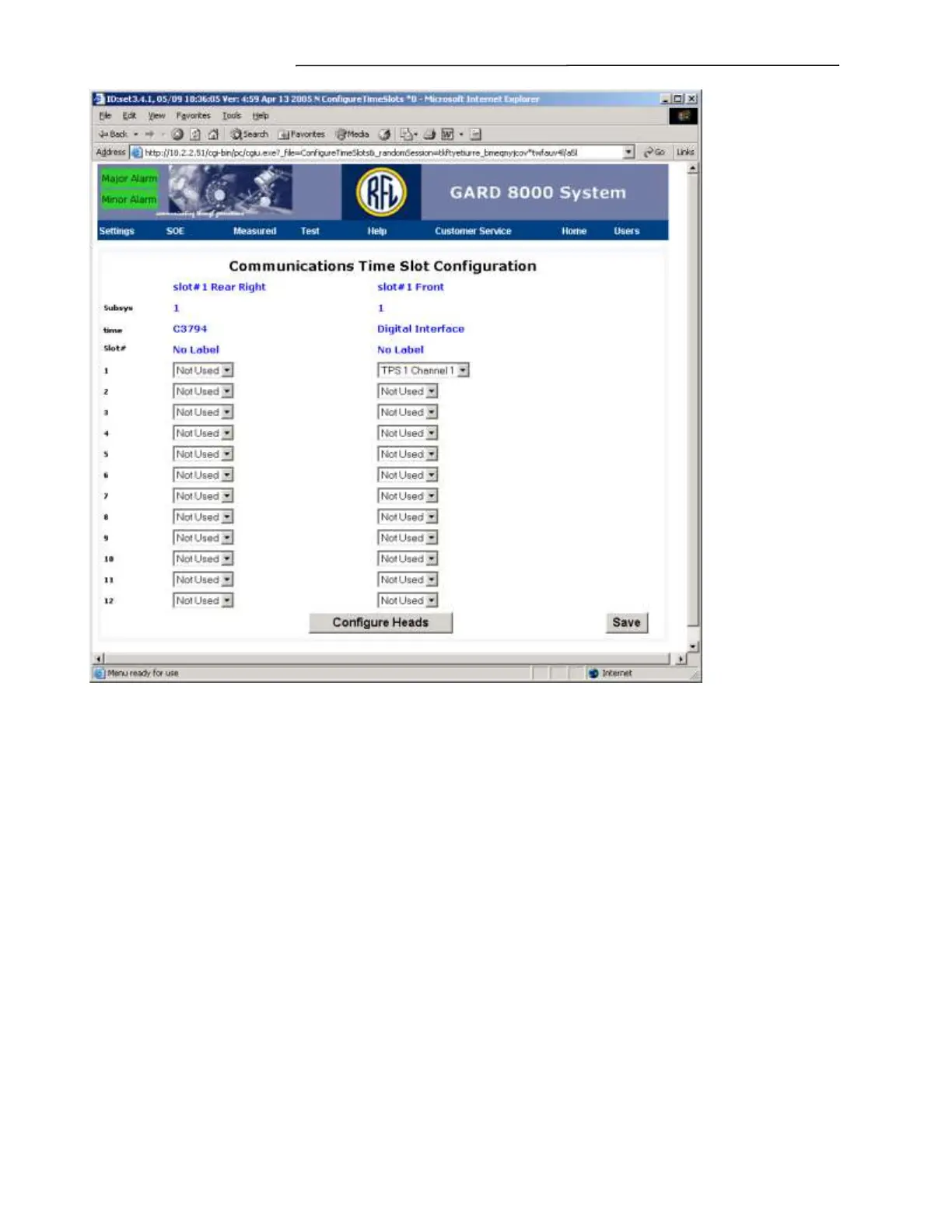 Figure 7-19. Communications Time Slot Configuration web page
