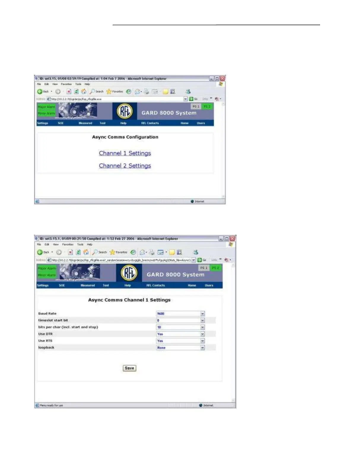 From the Chassis Configuration Settings web page select “Async Comms” the following web page will