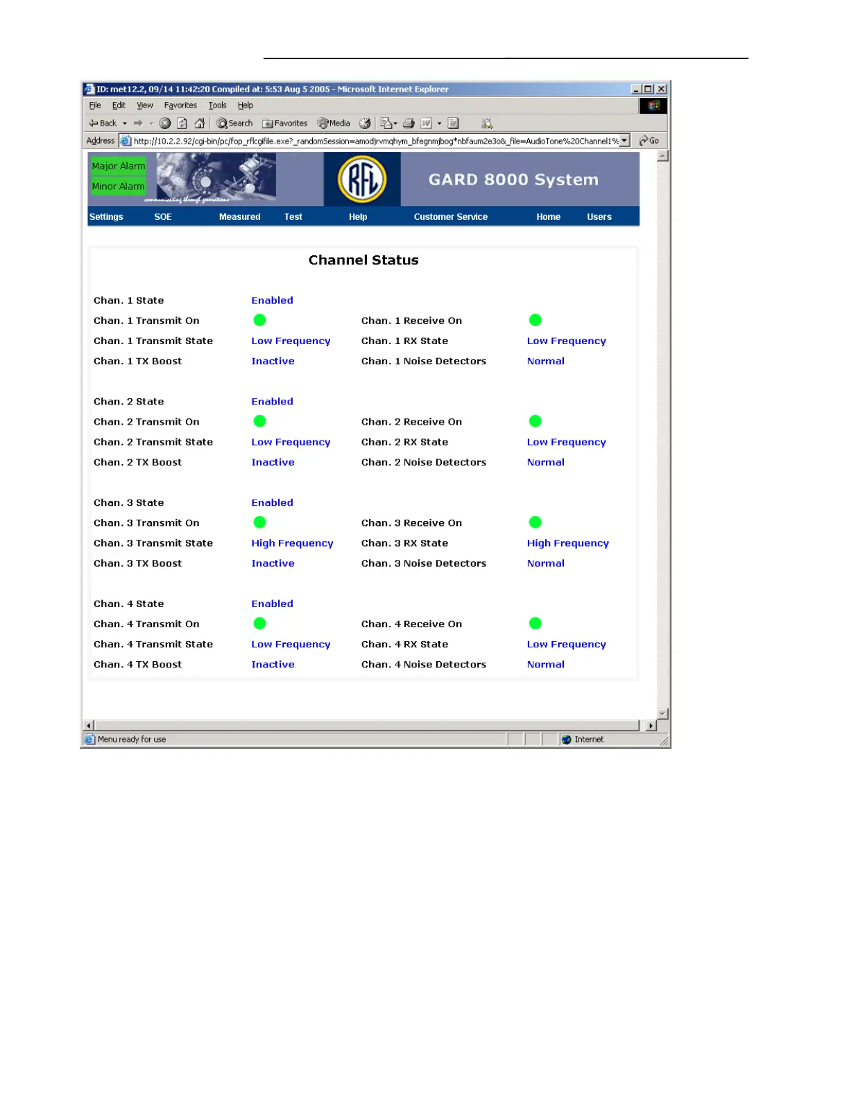 RFL Electronics GARD 8000 - Figure 7-33. Audio Tone, Channel Status Web Page