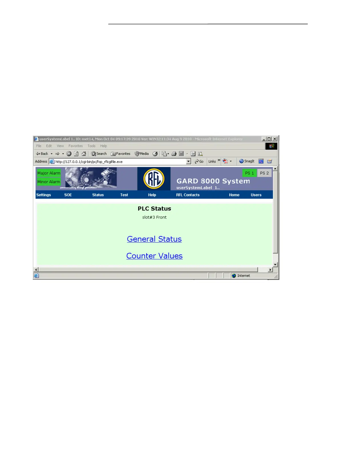 Click on General Status to go to the PLC General Status web page as shown on the following page.