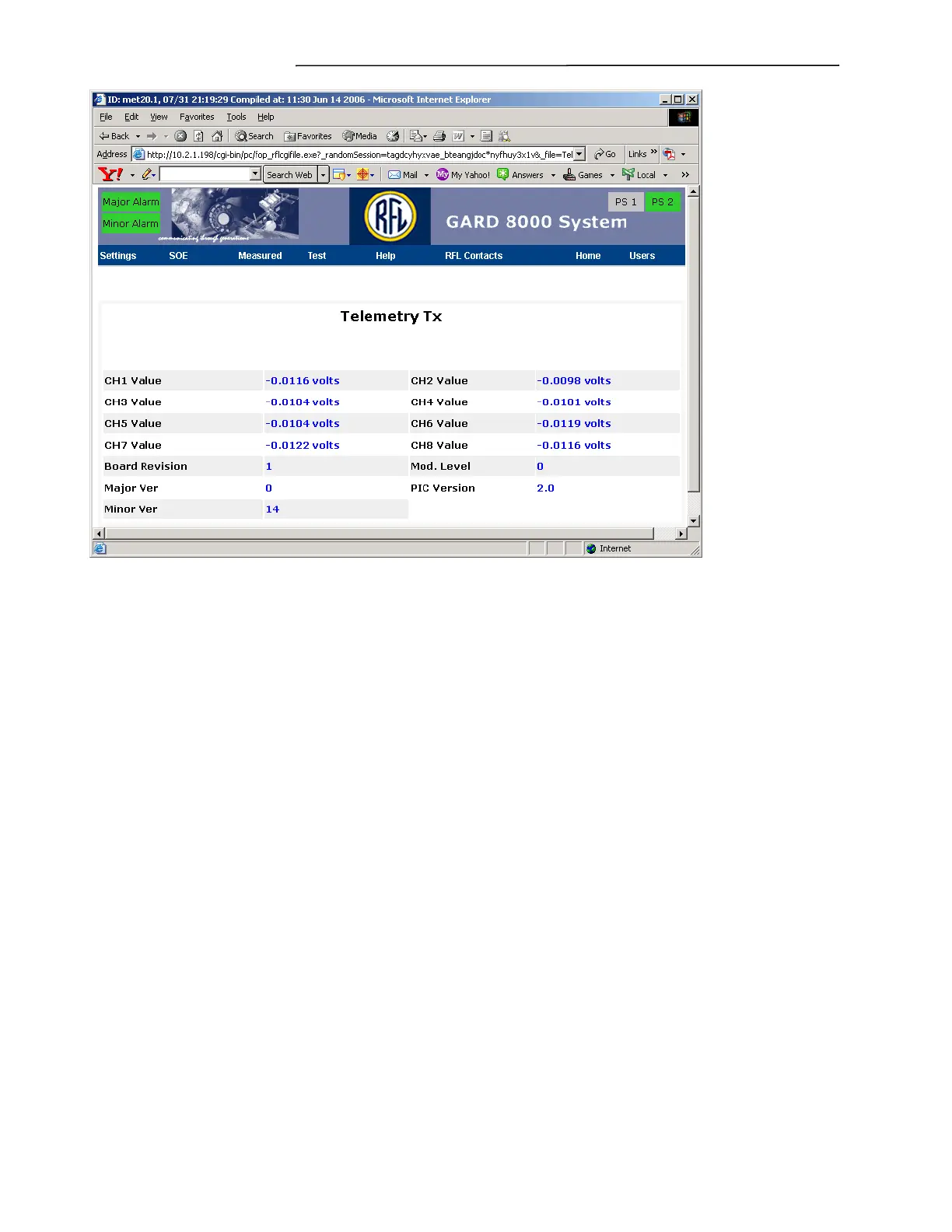 The Telemetry Transmitter Status web page will display the voltage value of the input and also the