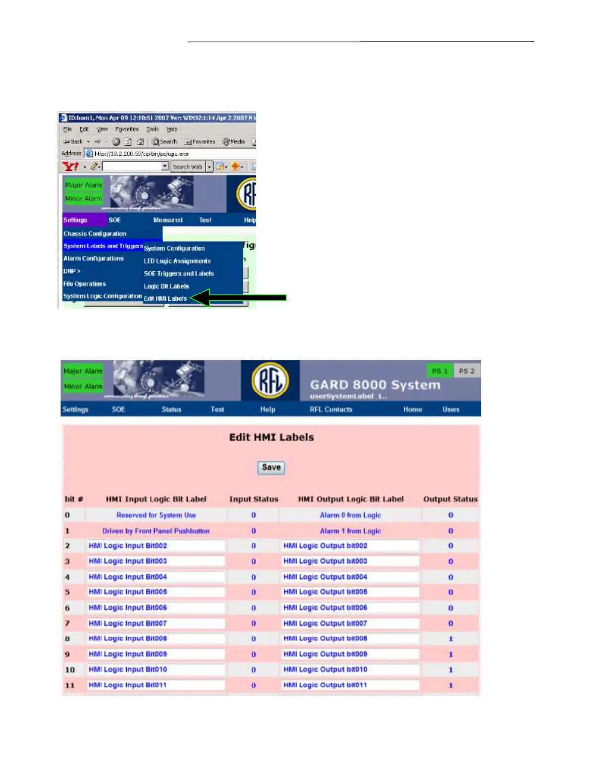 Figure 7-58. Edit HMI Labels web page
