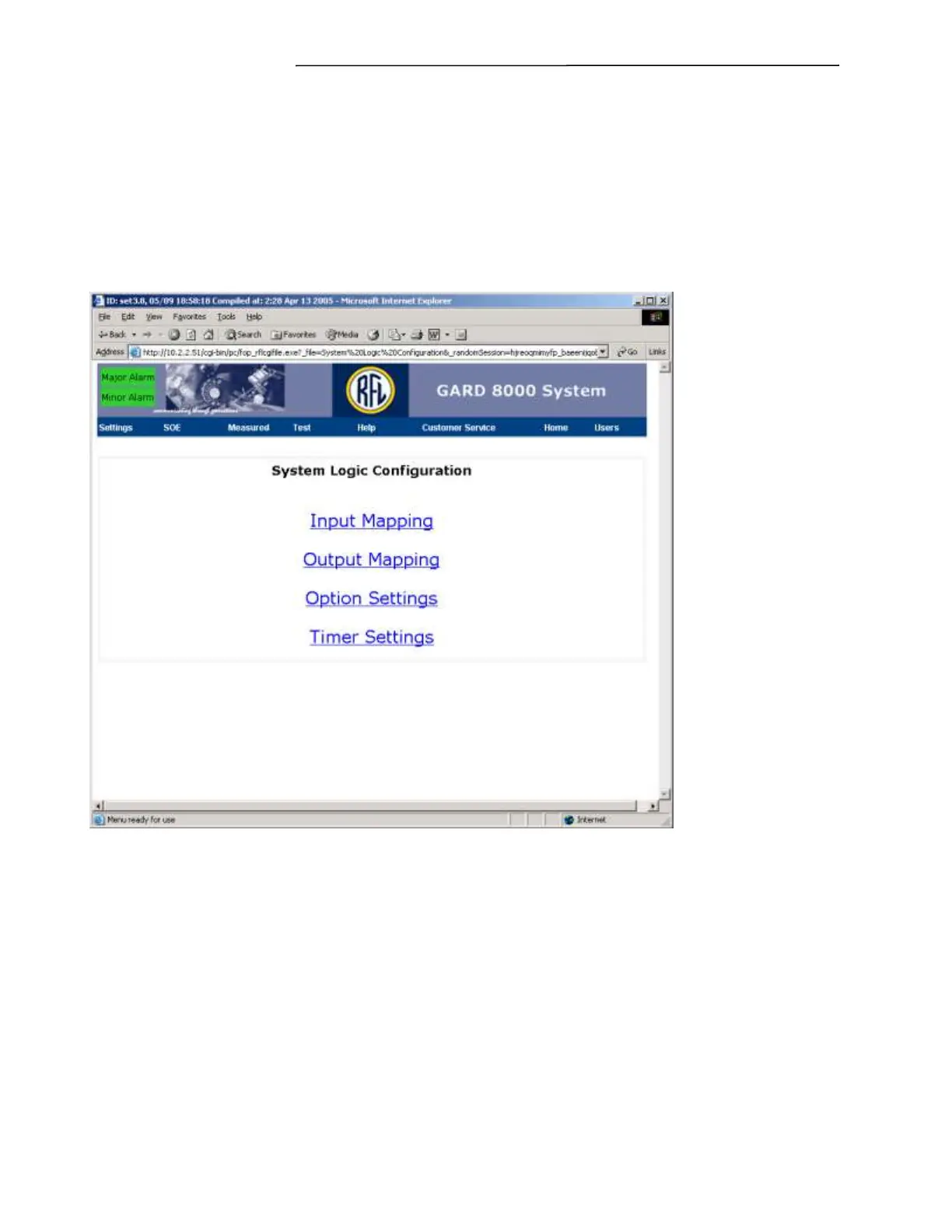 The System Logic Configuration page provides the user with logic programming flexibility through a