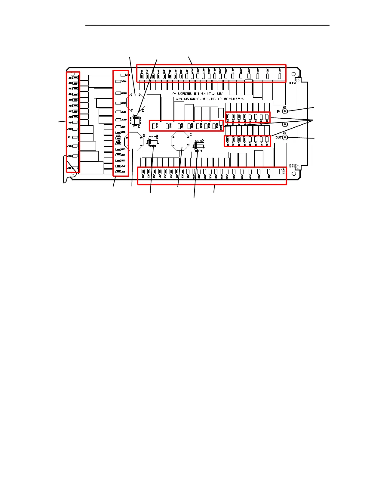 Figure 10-32. Location of Jumpers on the RX Filter Board, showing Jumper groupings