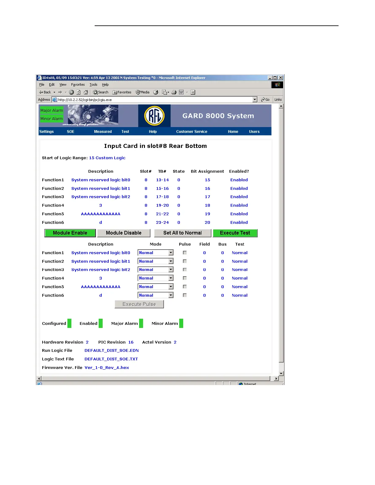Selecting a module will bring up that module’s test screen. Selecting the Input module in Chassis Rear