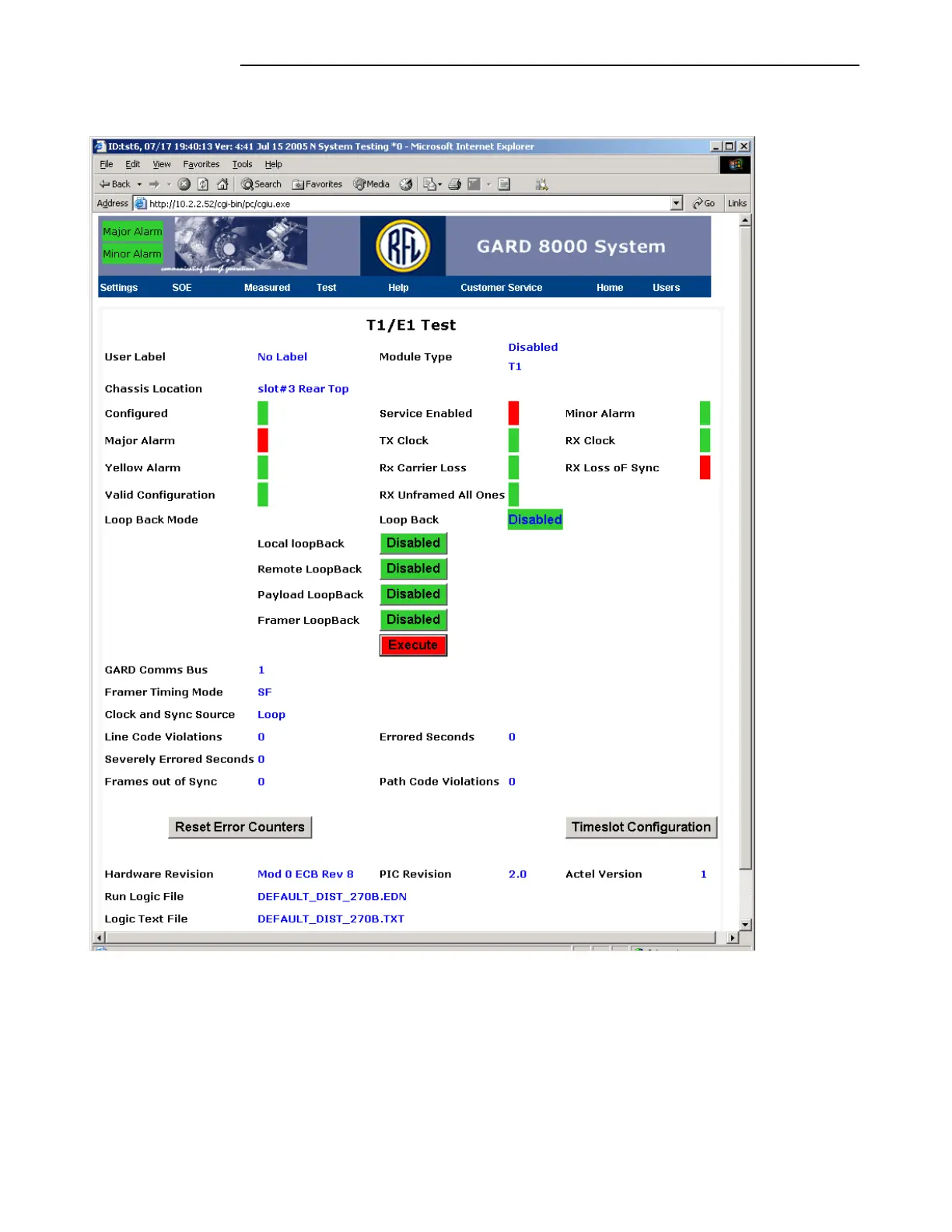 RFL Electronics GARD 8000 - Figure 11-18. T1; E1 Web Page