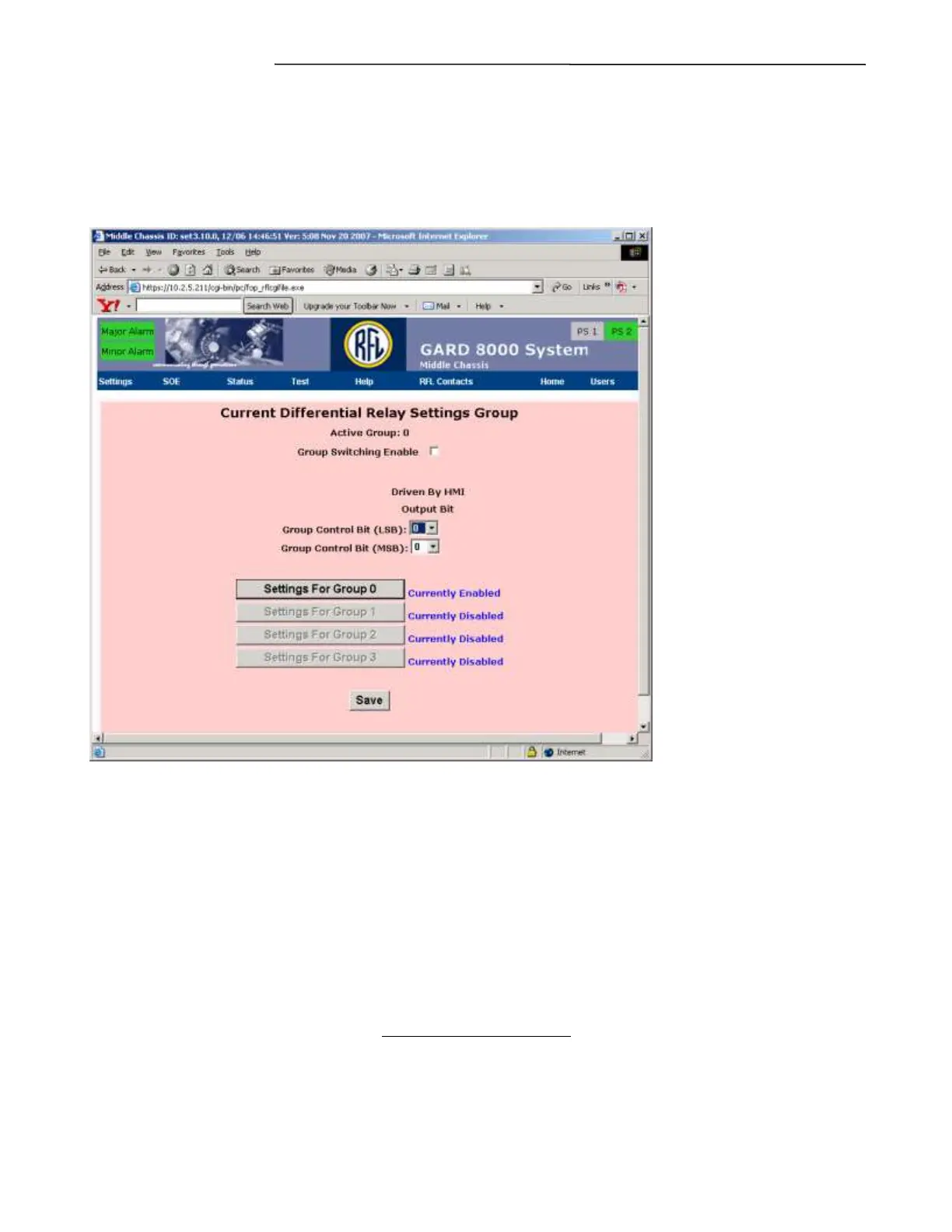 The above web page will allow the user to save up to four different sets of Current Differential settings