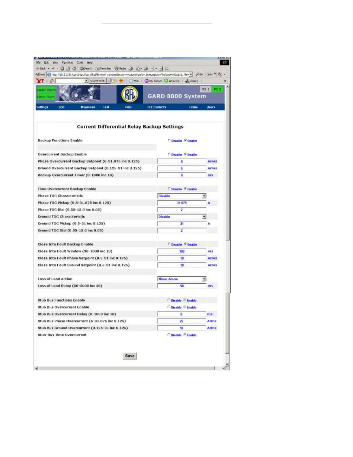 RFL Electronics GARD 8000 - Figure 13-18. Current Differential Relay Backup Settings