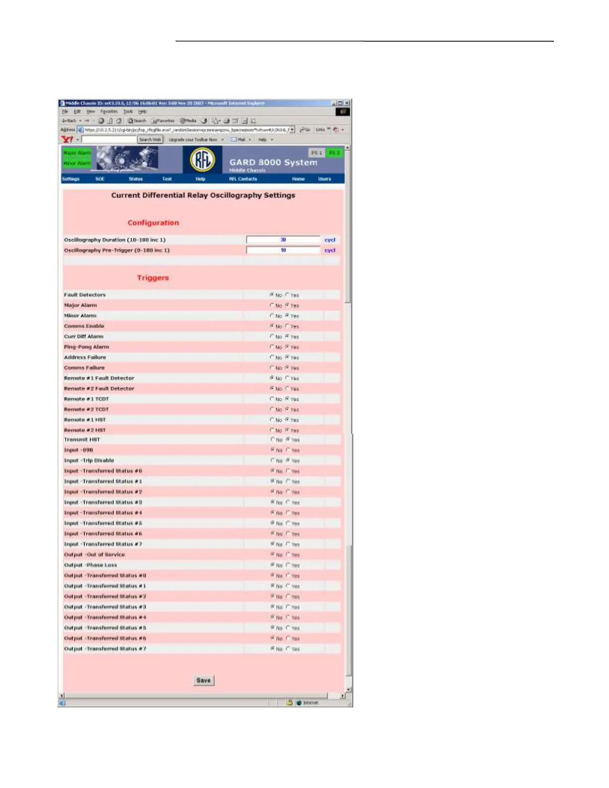 RFL Electronics GARD 8000 - Figure 13-20. Current Differential Relay Oscillography Settings
