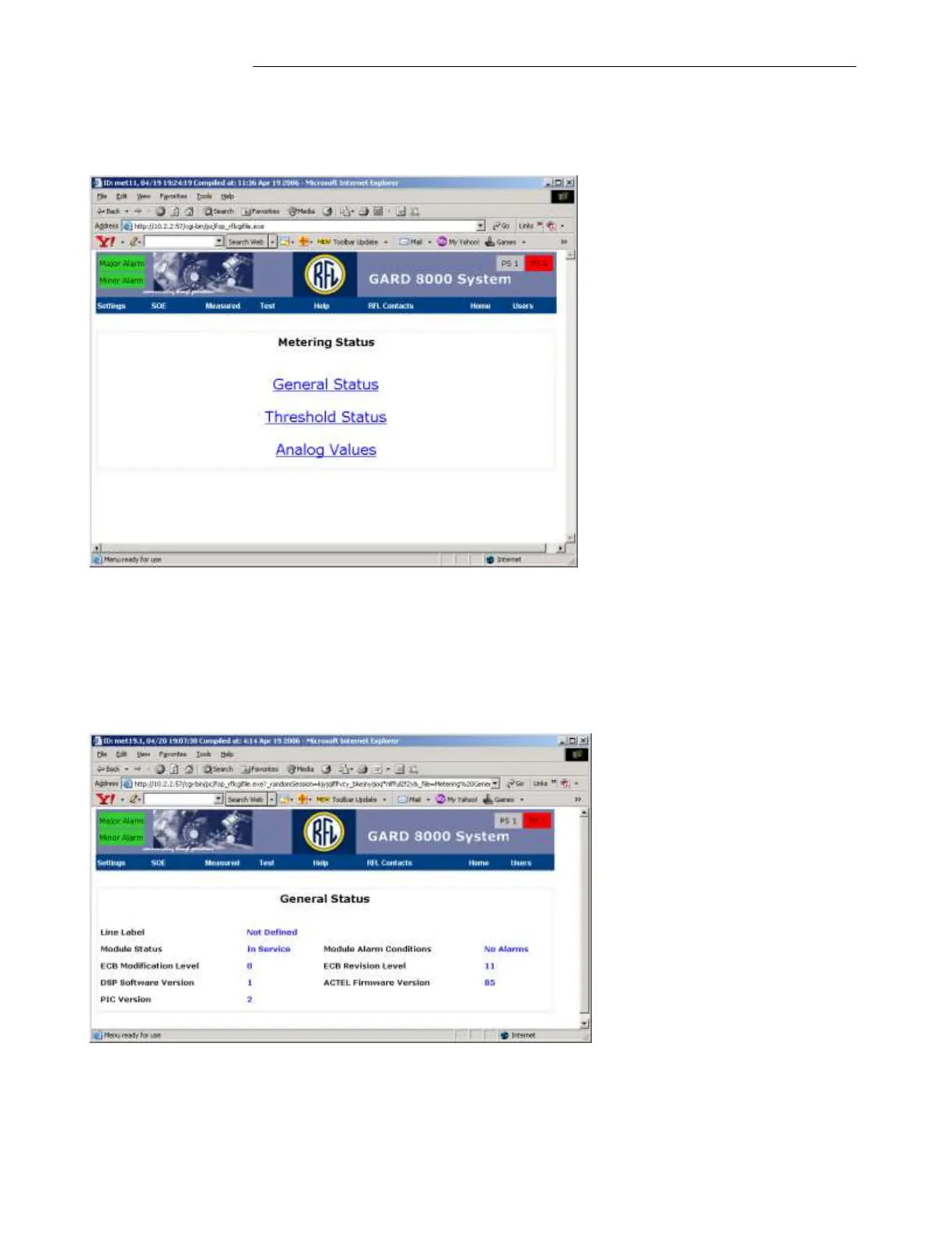 The metering module provides three pages to monitor the operation of the module as follows: