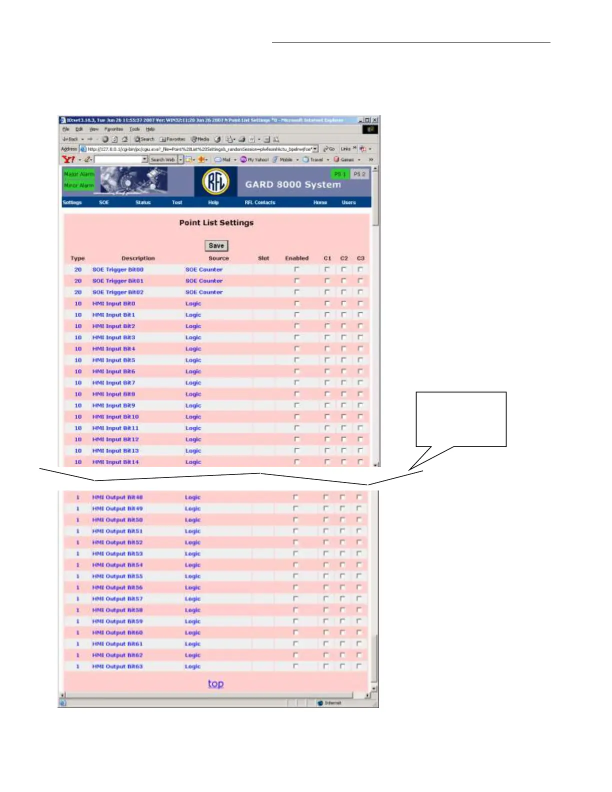 From the pull-down menu select Settings > DNP > Point List Settings, the following web page will