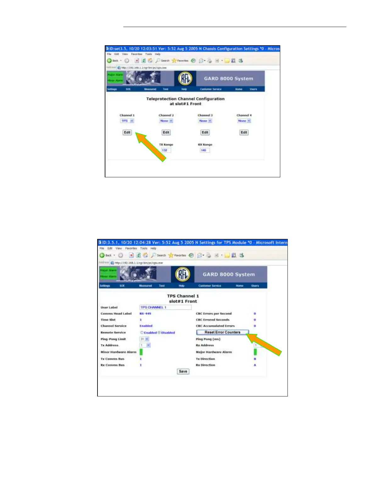 7. In ‘TPS Channel 1’, click on ‘Reset Error Counters’. This screen provides monitoring of the