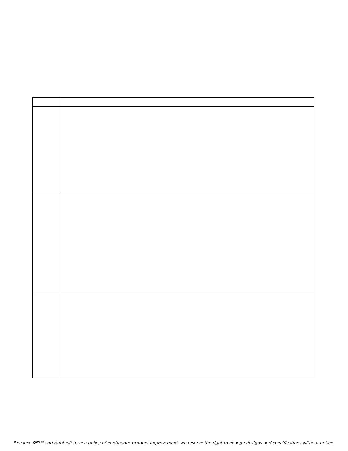 Because RFL™ and Hubbell® have a policy of continuous product improvement, we reserve the right to change designs and specifications without notice.