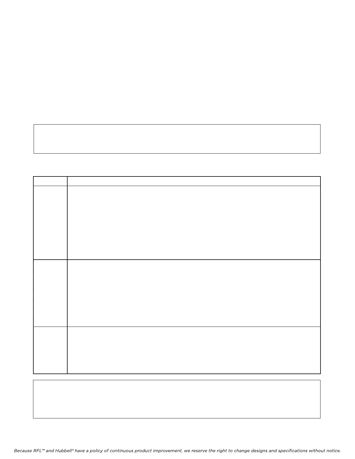 Because RFL™ and Hubbell® have a policy of continuous product improvement, we reserve the right to change designs and specifications without notice.