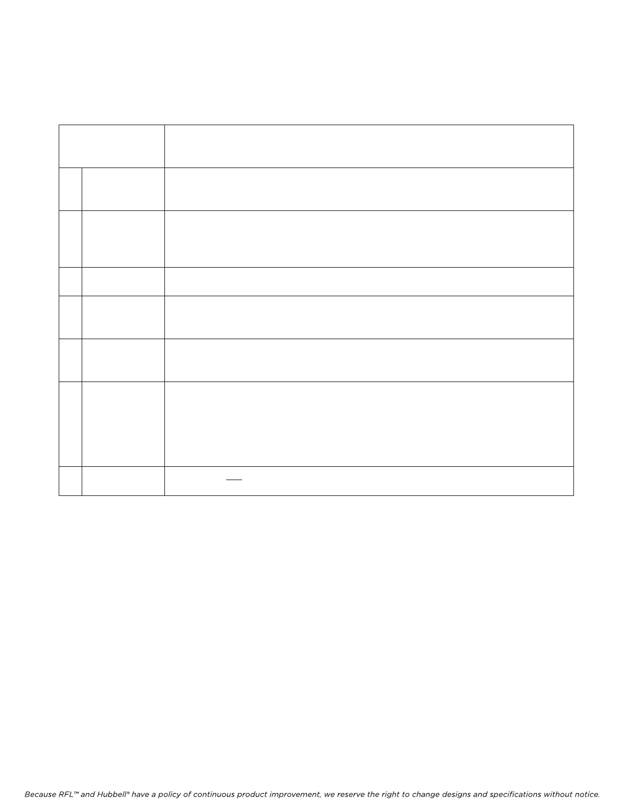 Because RFL™ and Hubbell® have a policy of continuous product improvement, we reserve the right to change designs and specifications without notice.