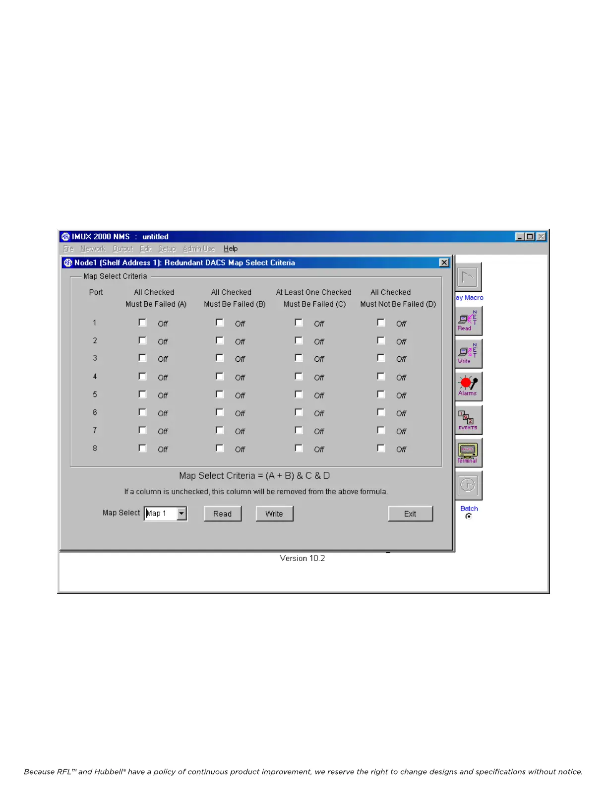 appropriate boxes in columns A, B, C and D to set the Map Select Criteria for Map 1.