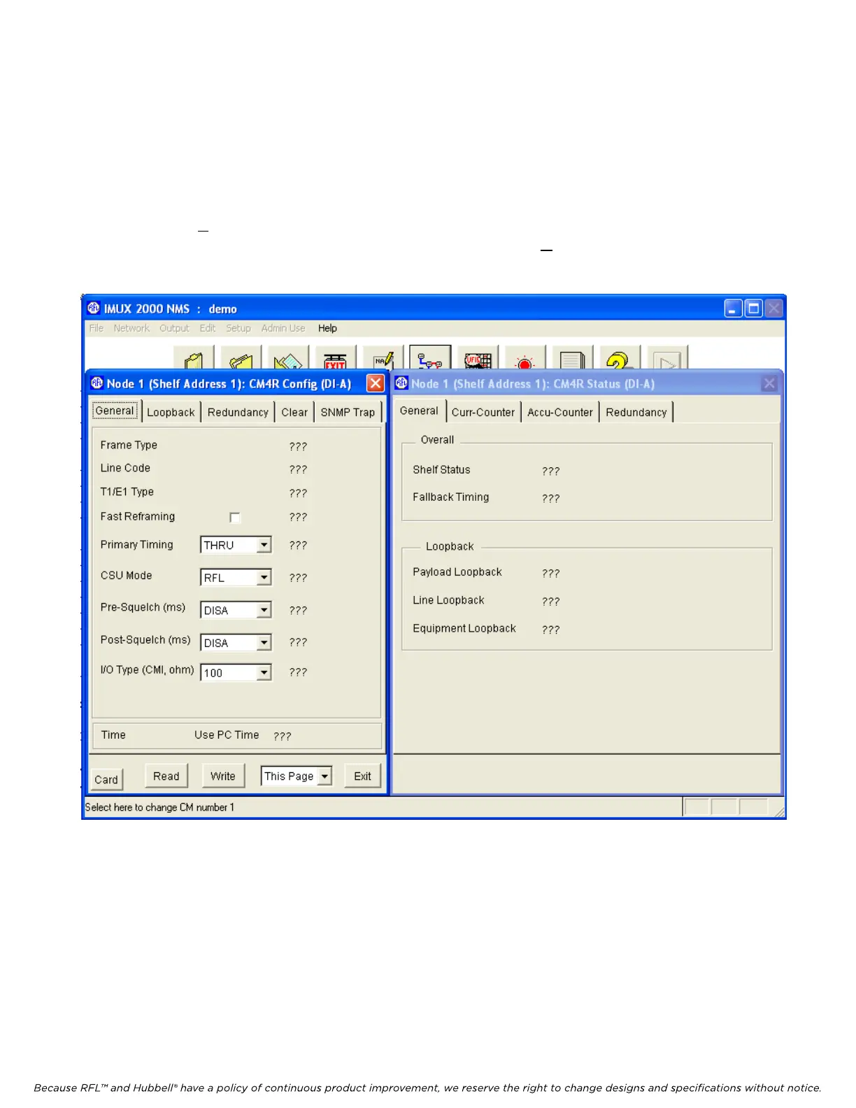 The CM4 Configuration and Status window is shown in Figure 5-29. This is where the user can view or