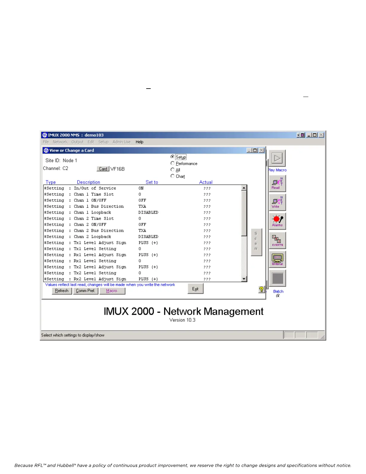 can view or change VF16B settings. The “Actual” column is what the VF16B module is actually set to,