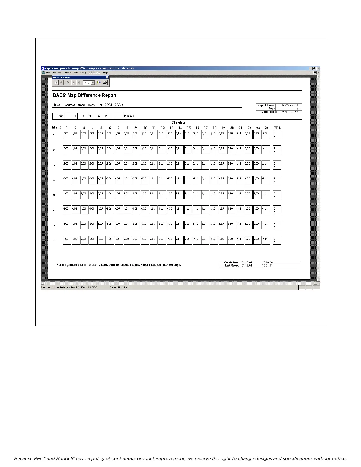 RFL Electronics IMUX 2000 - Figure 5-38. Page 1 of a Typical DACS Mapdifference Report
