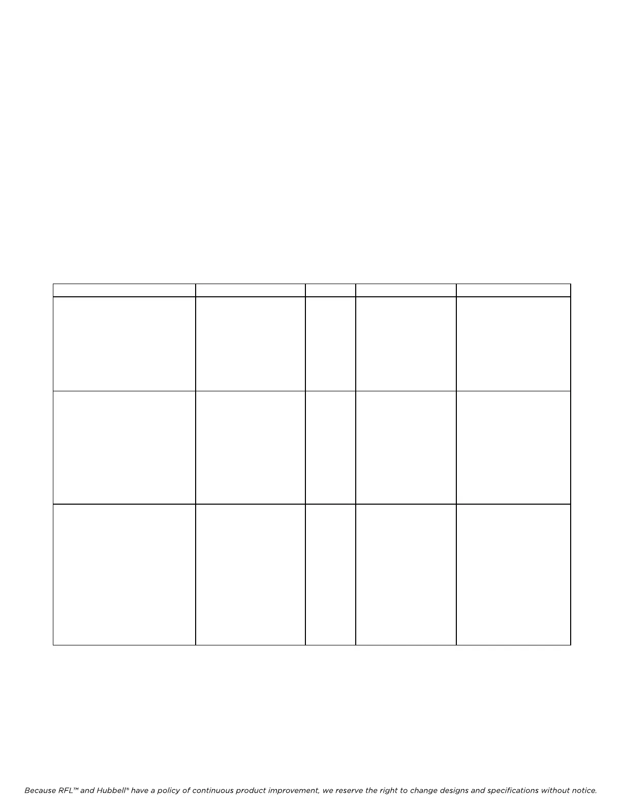 Because RFL™ and Hubbell® have a policy of continuous product improvement, we reserve the right to change designs and specifications without notice.