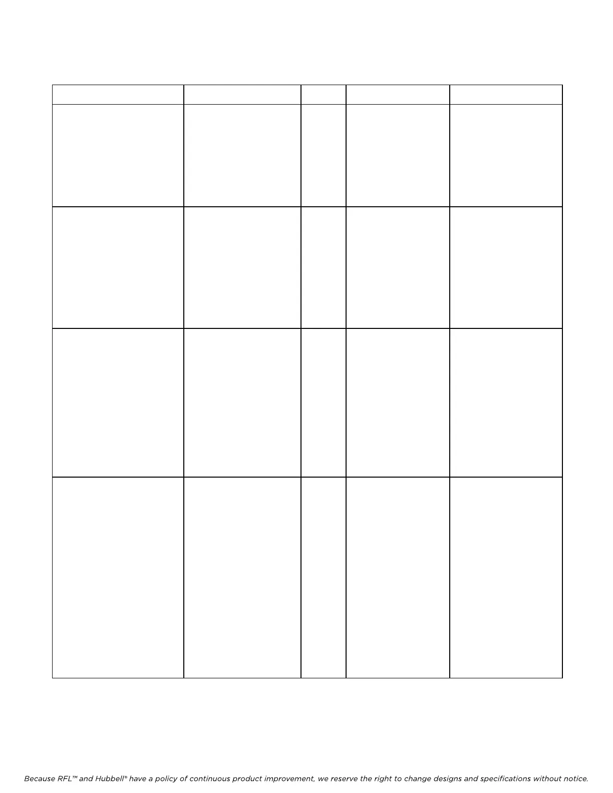 Because RFL™ and Hubbell® have a policy of continuous product improvement, we reserve the right to change designs and specifications without notice.