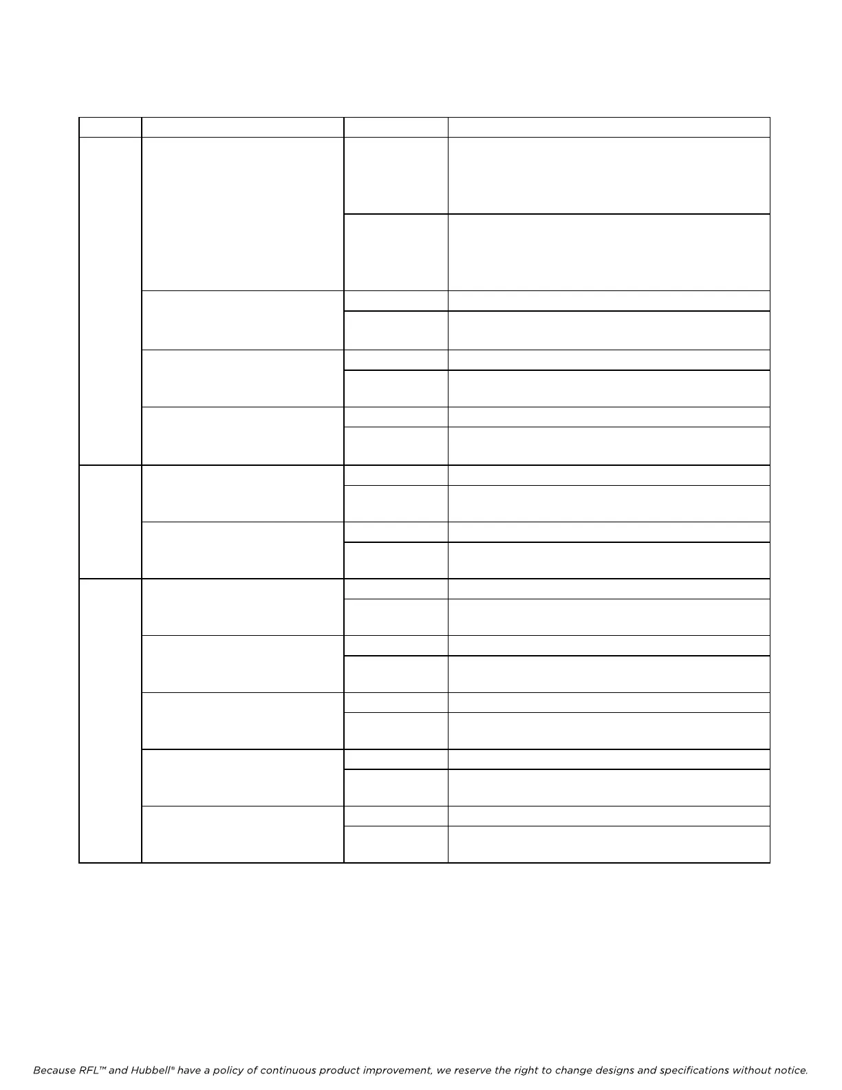 Because RFL™ and Hubbell® have a policy of continuous product improvement, we reserve the right to change designs and specifications without notice.