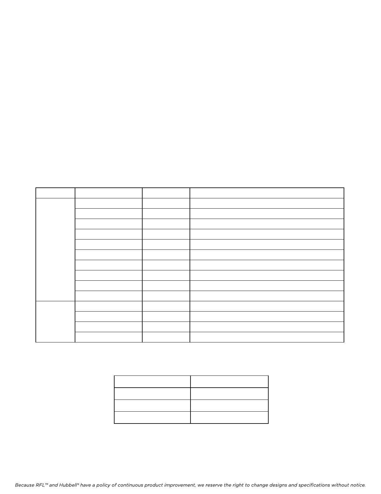 Because RFL™ and Hubbell® have a policy of continuous product improvement, we reserve the right to change designs and specifications without notice.