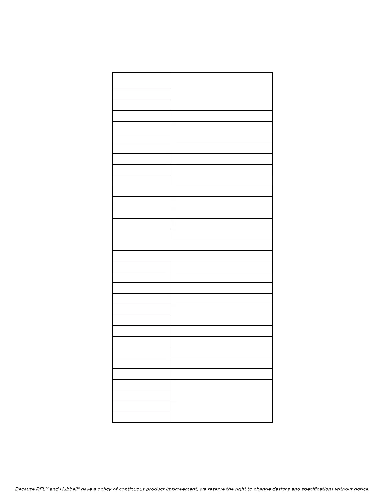 Because RFL™ and Hubbell® have a policy of continuous product improvement, we reserve the right to change designs and specifications without notice.
