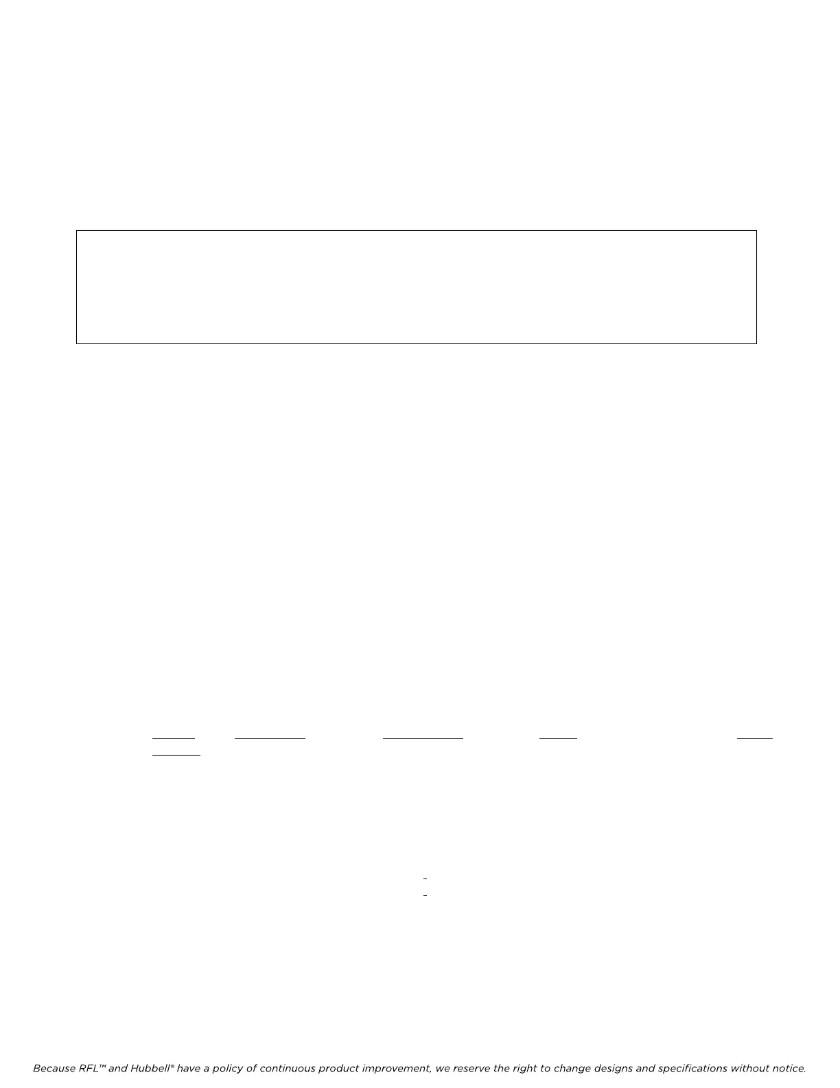 Because RFL™ and Hubbell® have a policy of continuous product improvement, we reserve the right to change designs and specifications without notice.