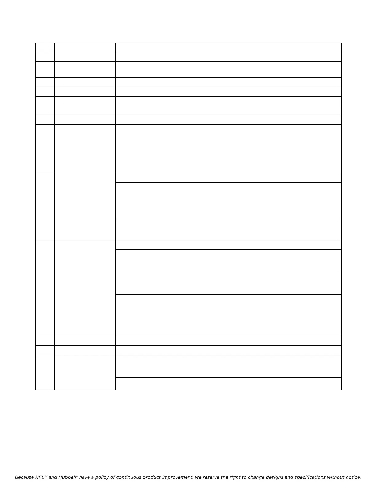 Because RFL™ and Hubbell® have a policy of continuous product improvement, we reserve the right to change designs and specifications without notice.
