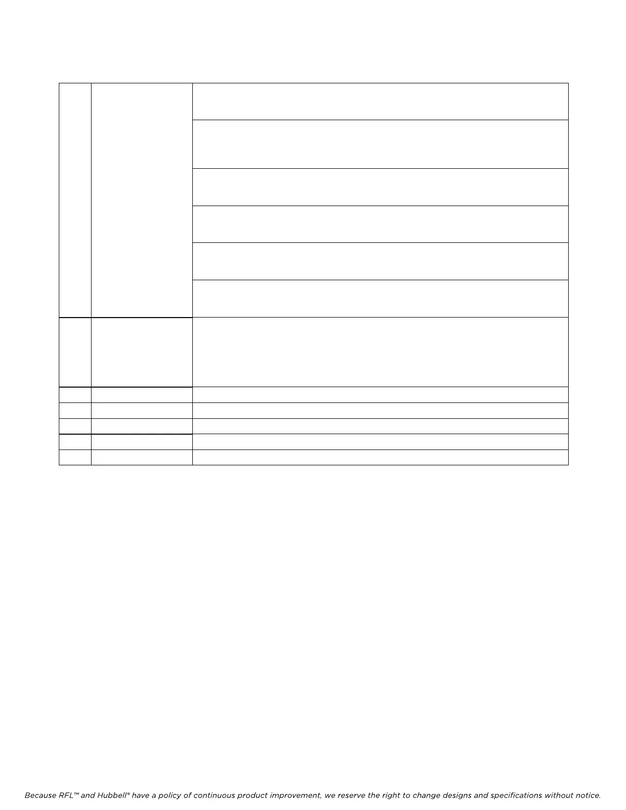 Because RFL™ and Hubbell® have a policy of continuous product improvement, we reserve the right to change designs and specifications without notice.