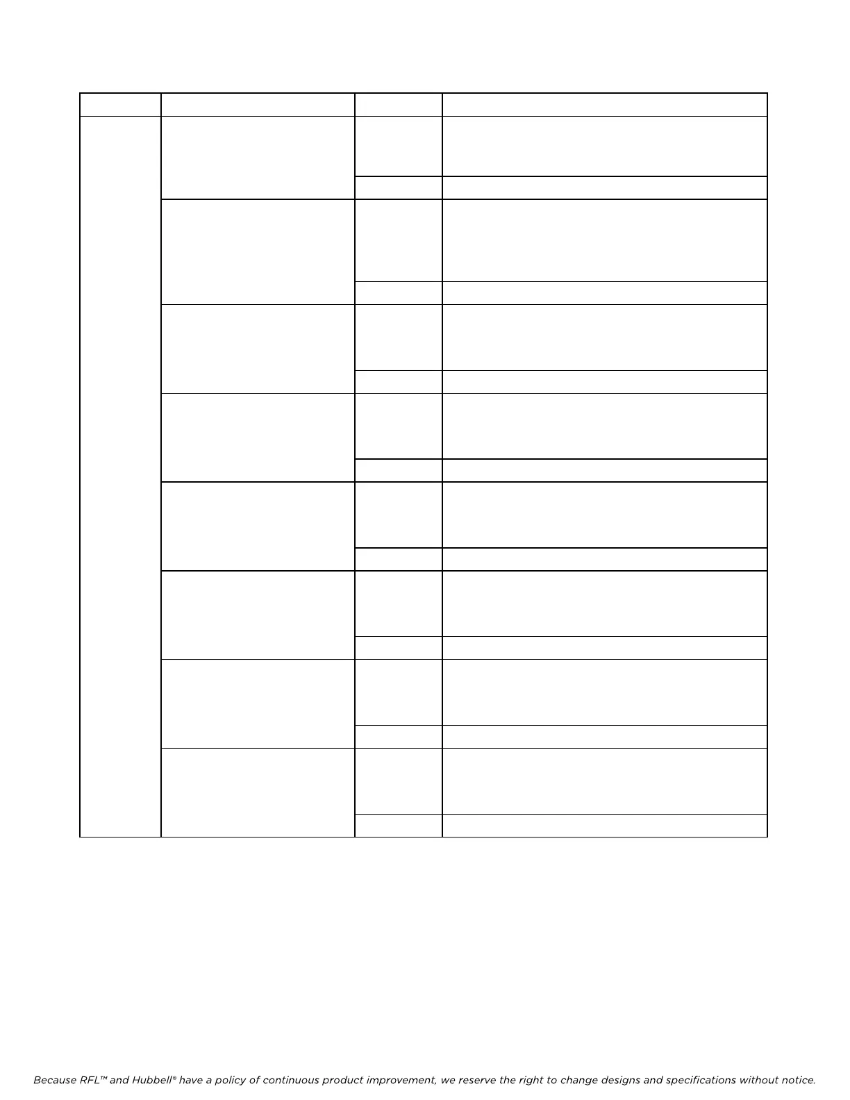 Because RFL™ and Hubbell® have a policy of continuous product improvement, we reserve the right to change designs and specifications without notice.