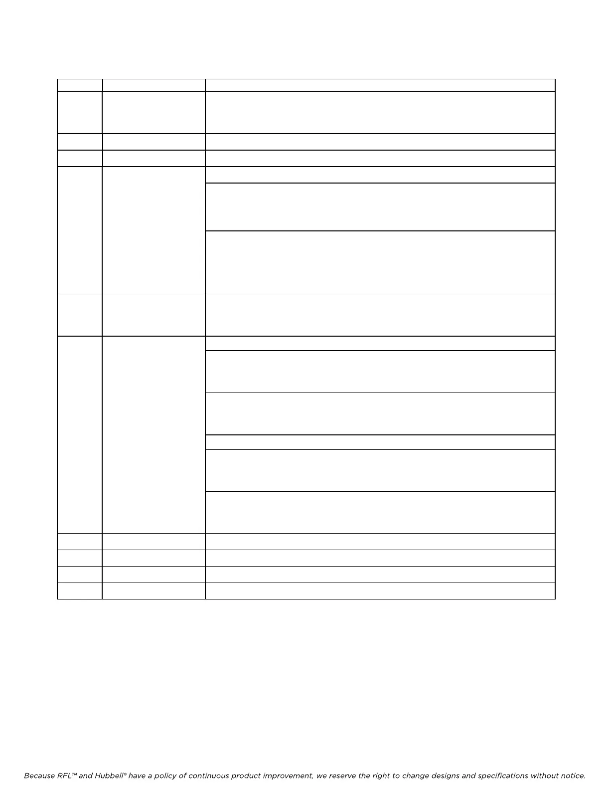 Because RFL™ and Hubbell® have a policy of continuous product improvement, we reserve the right to change designs and specifications without notice.