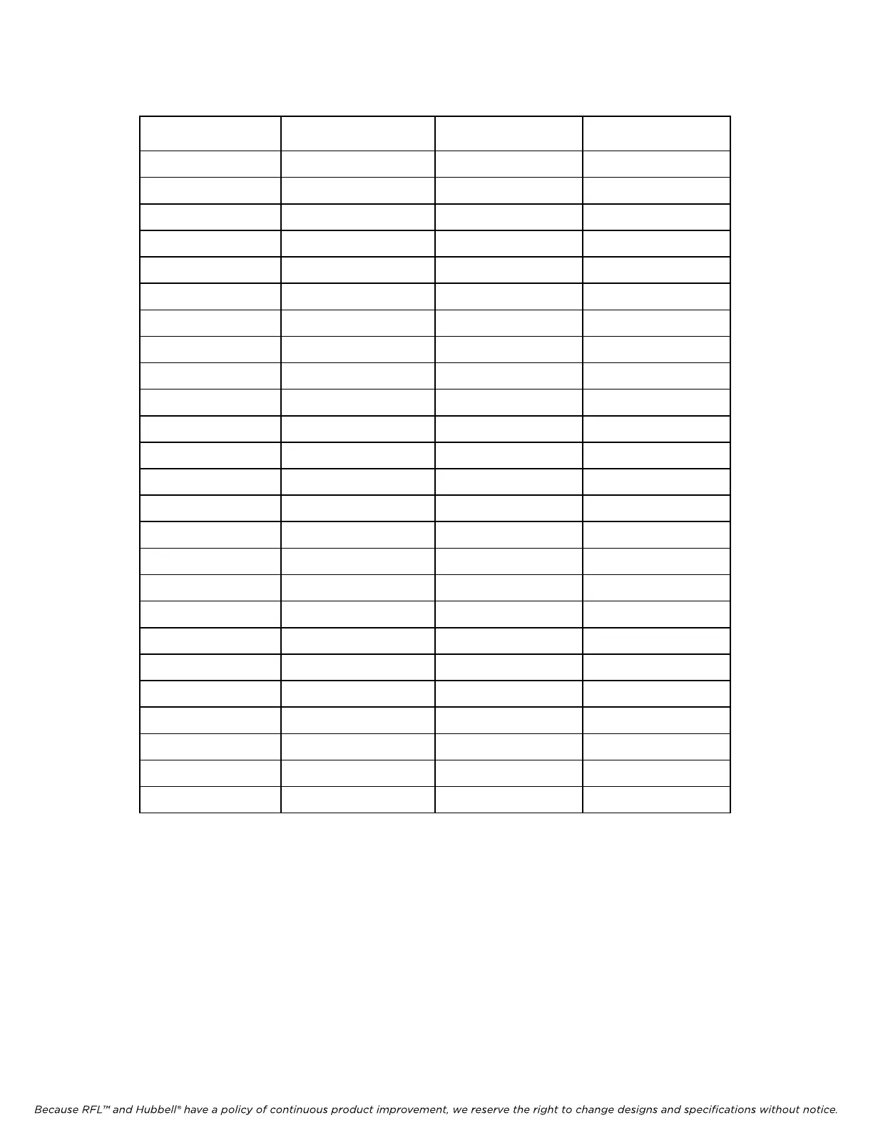 Because RFL™ and Hubbell® have a policy of continuous product improvement, we reserve the right to change designs and specifications without notice.