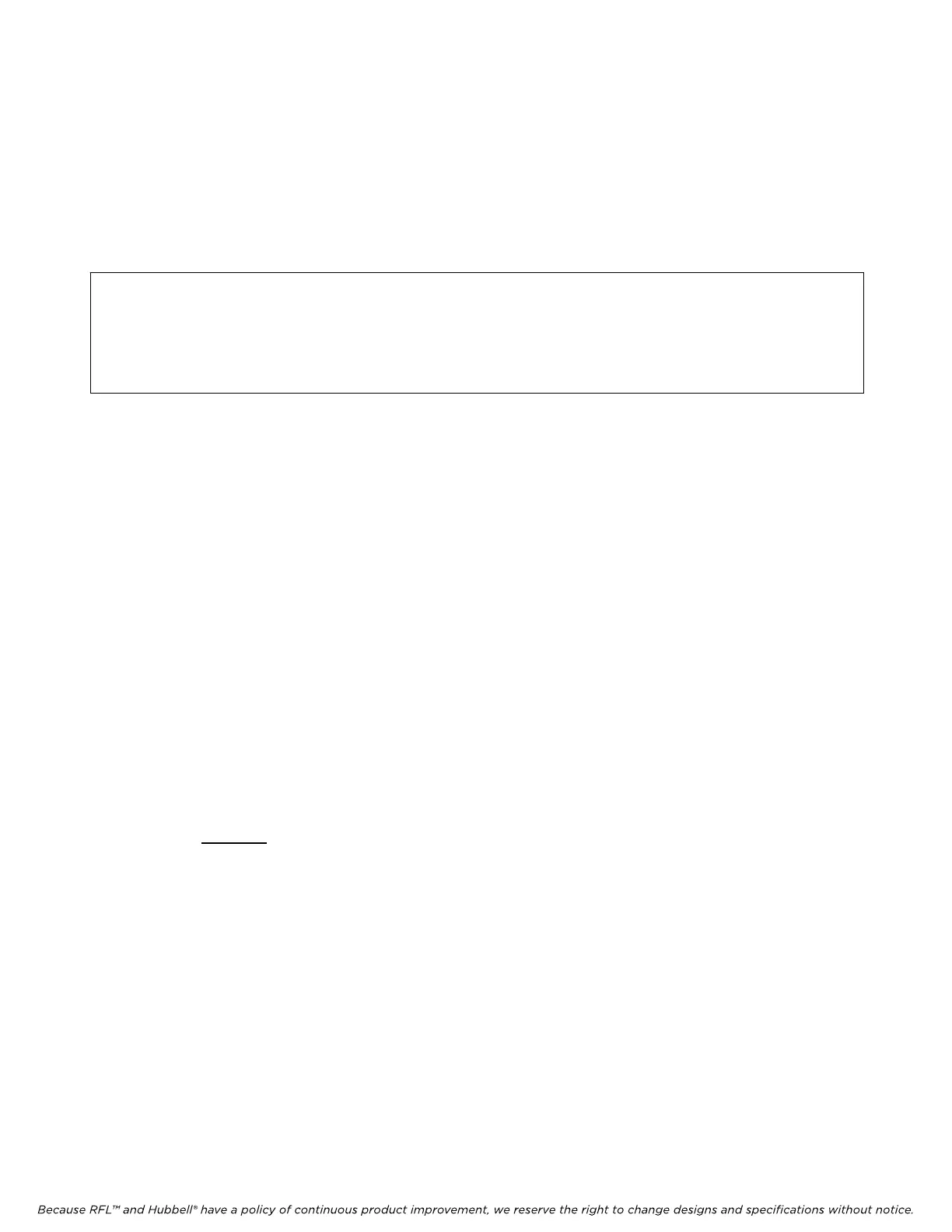 Because RFL™ and Hubbell® have a policy of continuous product improvement, we reserve the right to change designs and specifications without notice.