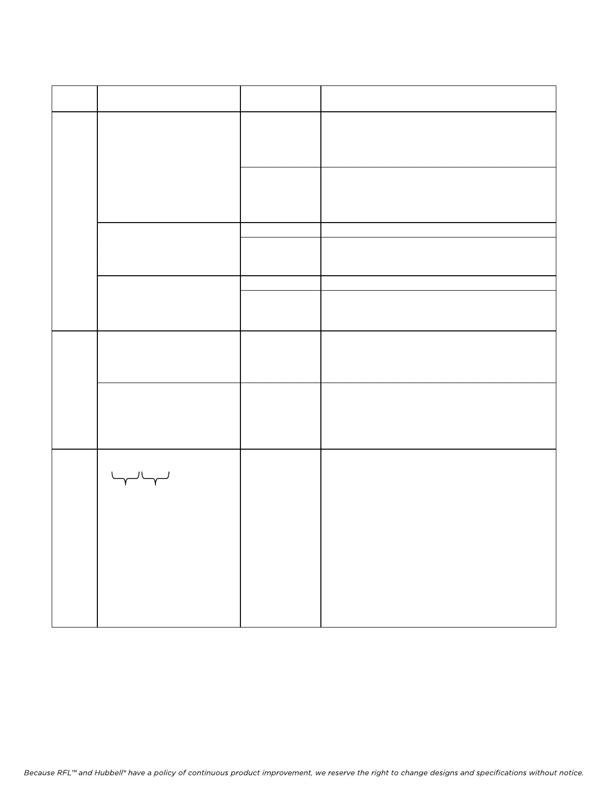 Because RFL™ and Hubbell® have a policy of continuous product improvement, we reserve the right to change designs and specifications without notice.