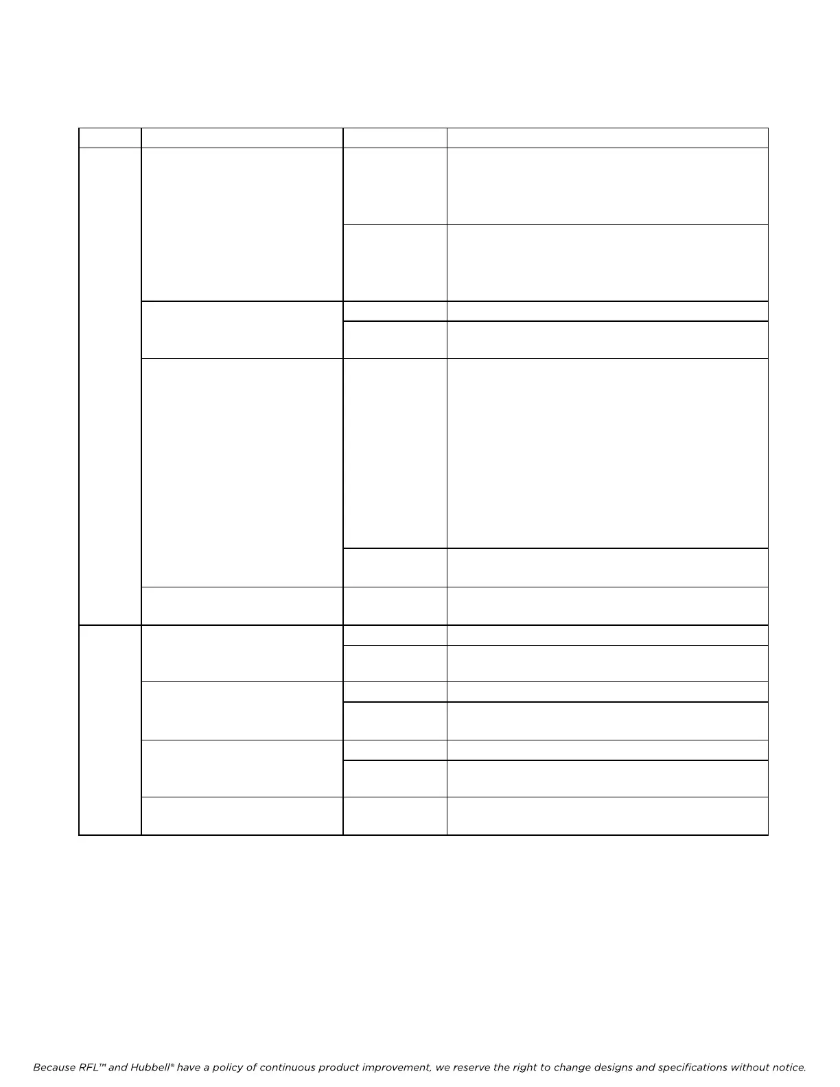 Because RFL™ and Hubbell® have a policy of continuous product improvement, we reserve the right to change designs and specifications without notice.