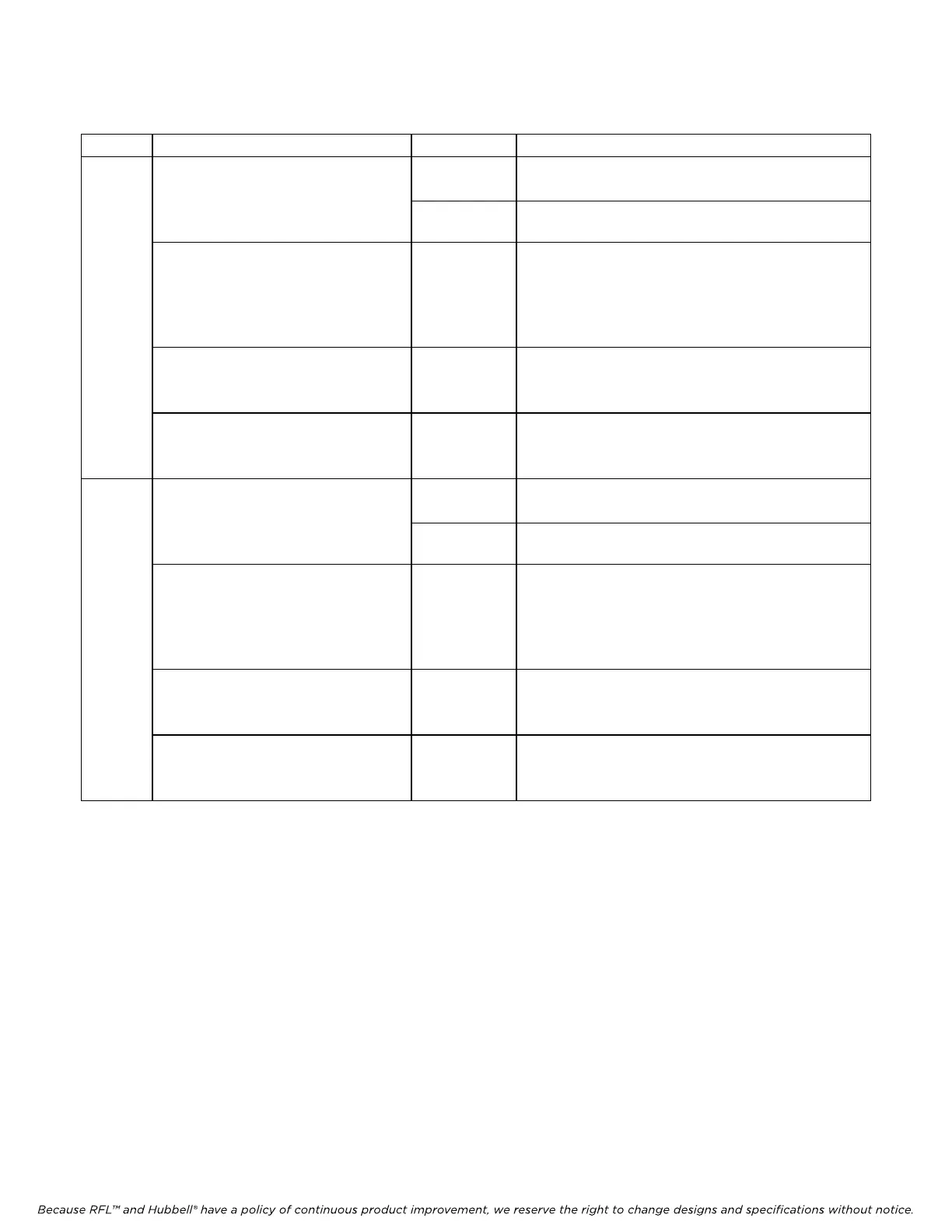 Because RFL™ and Hubbell® have a policy of continuous product improvement, we reserve the right to change designs and specifications without notice.